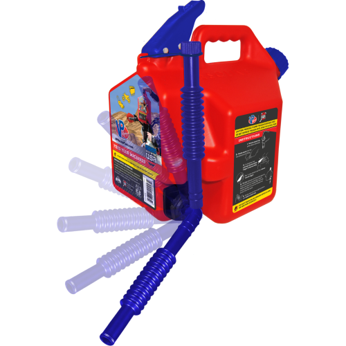 The can features a rotating nozzle and thumb release trigger that allows the flow of the fuel to dispense from the bottom so you can let gravity do all the work! Other features include self ventilation, comfortable grip, and durable design.